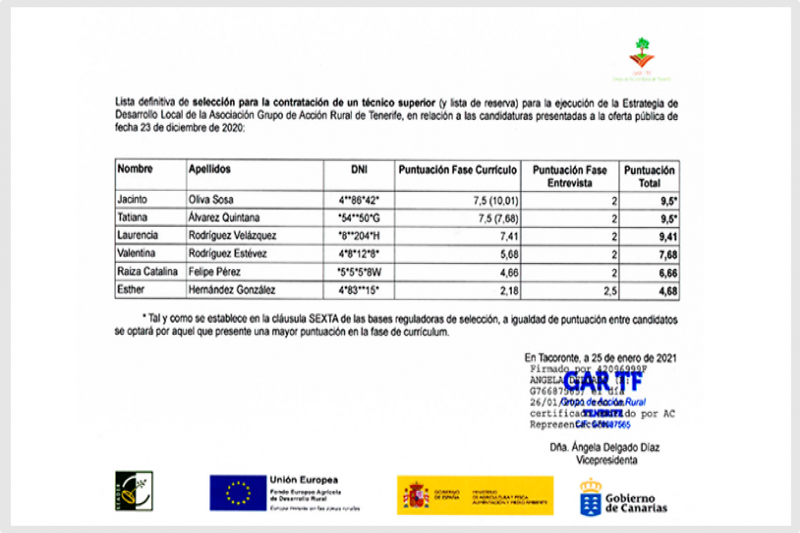 Resultados del proceso selectivo para la contratación de un técnico/a
